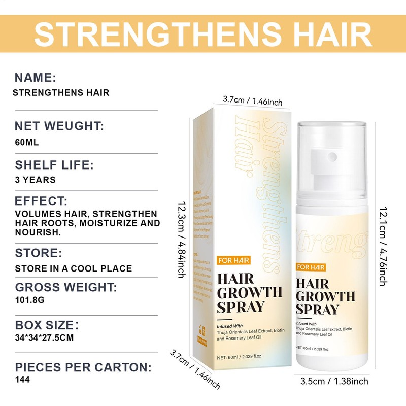 Fine Hair Revitalization: Hair Growth Spray provides a hair-strength enhancing formula designed to nourish and revitalize thin or fragile strands, promoting scalp balance and reducing breakage, which is perfect for daily grooming regimens focused on restoring confidence