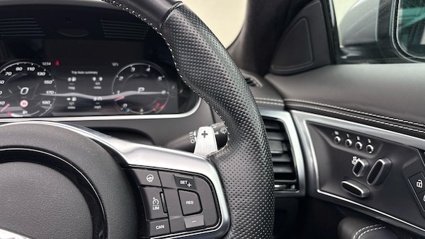 Heated Steering Wheel,Stage 1 Re-Map,Windsor Leather Performance Seats - Ebony with Light Oyster Stitch,Heated Steering Wheel,Heated Front Windscreen,Climate Pack,Meridian Surround Sound System,2-Zone Climate Control,Paddle Shift Steering Wheel,Eiger Grey,Start / Stop,Lane Keeping Aid,Front and Rear Parking Aids,Infotainment Unit,Sat Nav,Ebony,Ebony,Exterior Black Pack,Continuous Variable Damping,Bluetooth Interface,Connected Navigation Data,Android Auto,Apple Carplay,4 Way Seat Lumbar,Connected Nav Pro,Forward Facing Camera,Rear View Camera-Fixed,Driver Drowiness Monitoring,Traffic Sign Recognition with Speed Limiter,Passive Keyless Entry/Start,LED Premium Headlamps,High Line Ambient & Footwell Lighting,SOS / Assistance Call,Navigation System,Digital Audio Broadcast Radio,In Control Remote,Double Locking Power Lock Latch,Heated Windscreen,Ebony Headliner,Heated Steering Wheel,Heated/Cooled Front Seats,12 way Front Heated / Cooled Seats,Ebony,Sports Seats,Rear Spoiler,Black Brake Calipers