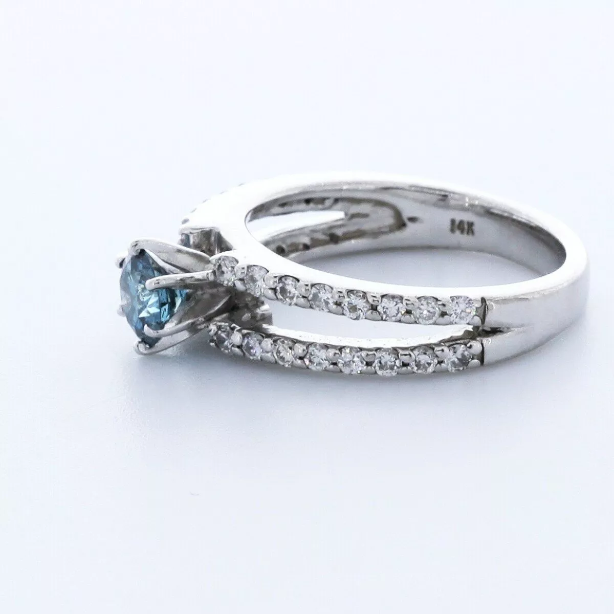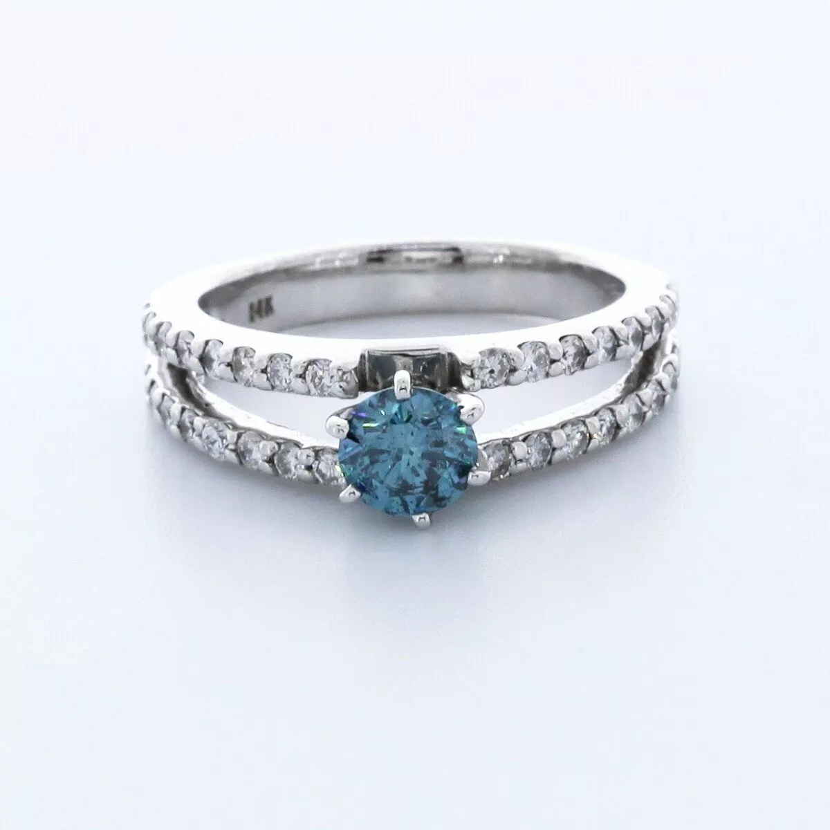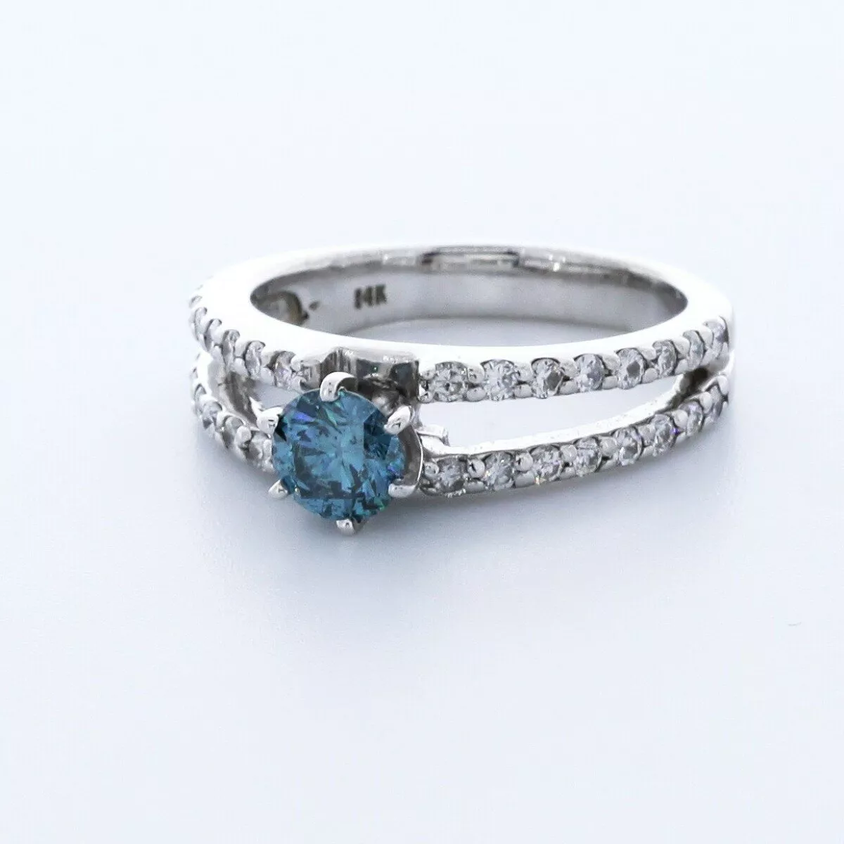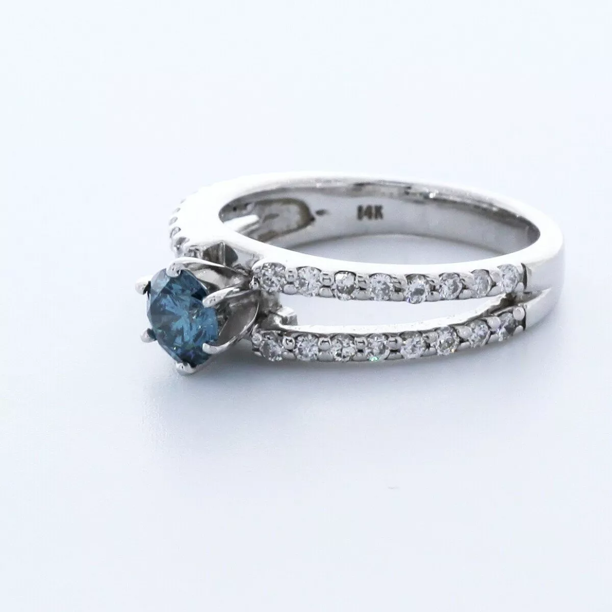 This exquisite blue diamond engagement ring embodies romance and elegance, perfect for expressing your love during a proposal or marking a special anniversary. Featuring a mesmerizing round center stone set in a secure six-prong setting, the ring’s split-shank design adds a modern twist. Sparkling pavé side stones enhance its brilliance, creating a timeless piece you’ll cherish forever. An investment in love, this ring captures both beauty and meaning, ensuring joy for generations to come.