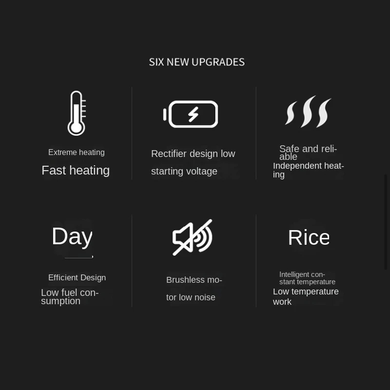 Merkmale: 1. Drücken Sie einfach leicht auf den Heizungsschalter, warten Sie geduldig 10-15 Minuten, und die Wassertemperatur kann auf 80 Grad erhitzt werden, wodurch sichergestellt wird, dass das Fahrzeug gut gewartet wird und die Kabine mit warmer Luft versorgt wird. 2. Schnelle Erwärmung 3. Automatische Konstanttemperatur 4. Fehlerbehebung