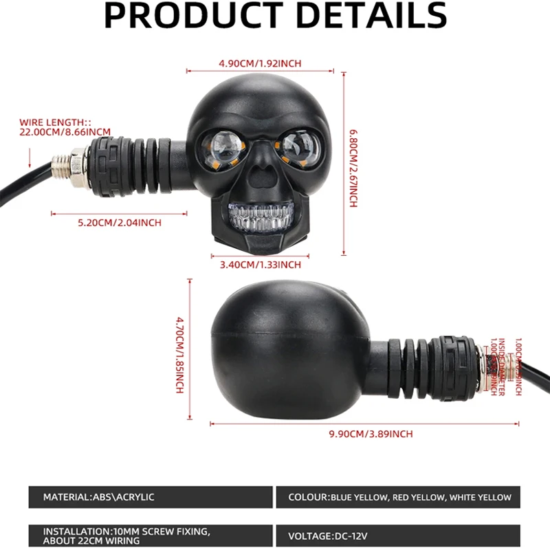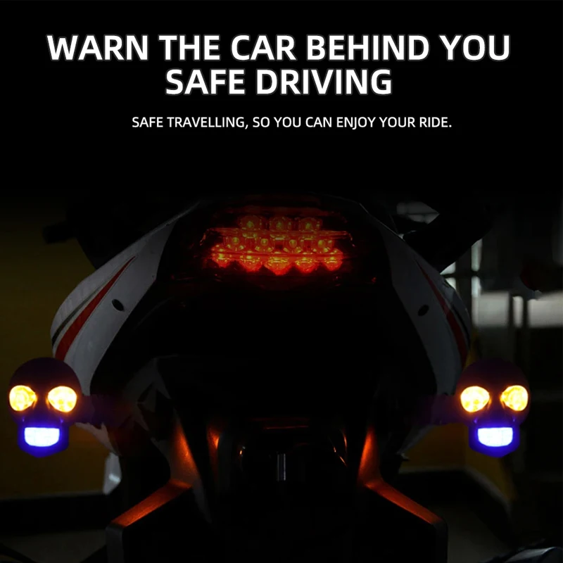 2PCS Dual Color Motorcycle LED Skull Shape Waterproof Fog Light Auxiliary Headlights ATV Scooter Driving For Racer Spotlight