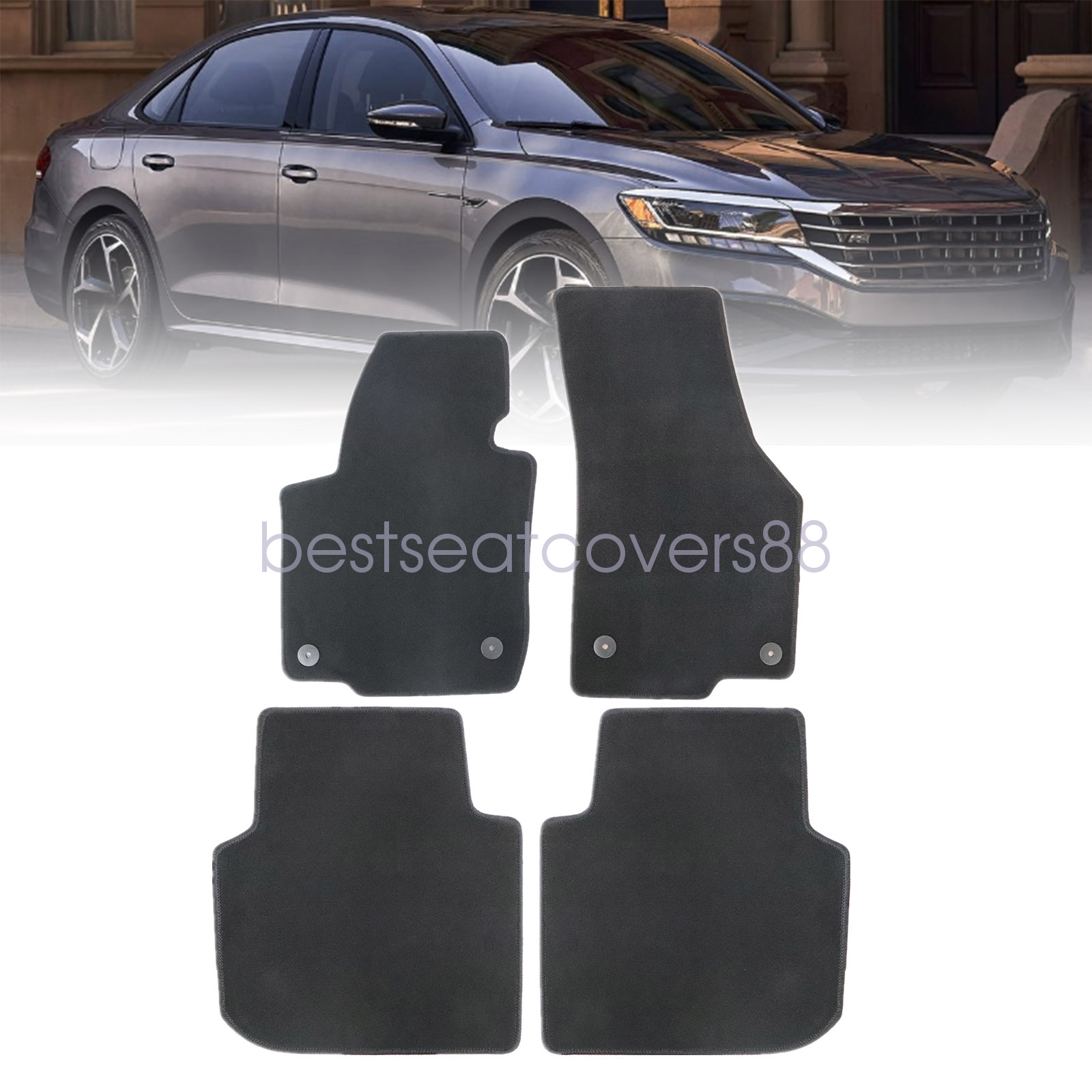 OEM Replacement Black Velour Front & Rear Floor Mats Carpet Fits 2012 2013 2014 2015 2016 2017 2018 2019 Volkswagen Passat