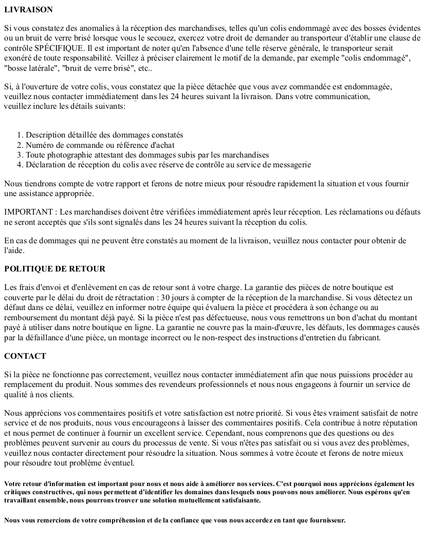 Voulez-vous que nous nous assurions que cette pièce conviendra à votre véhicule? Nous pouvons le vérifier! Il vous suffit de nous envoyer une photo de la fiche technique et/ou la référence de votre pièce.