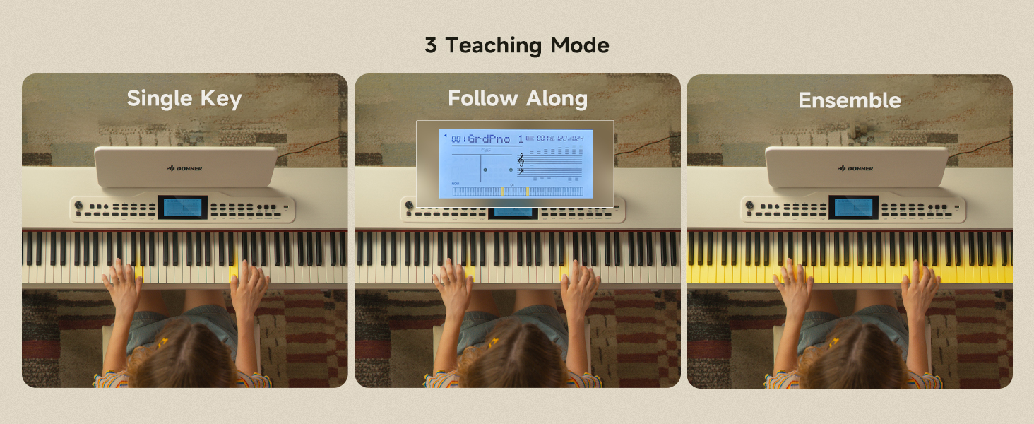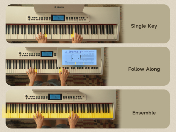 3 TEACHING MODES: The teaching mode of DDP-95 digital piano supports separate practice for left and right hands, guiding learners progressively through techniques. Suitable for all levels, enhancing skills and enjoying music learning