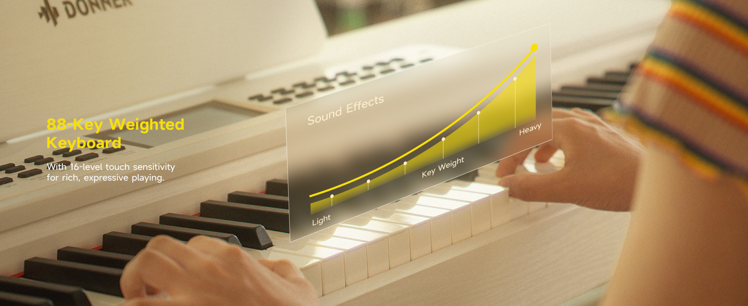 SUPERIOR PLAYING EXPERIENCE: 88-key fully-weighted keyboard, 16-level touch sensitivity for authentic piano feel. Effortless control over dynamics for a better playing experience