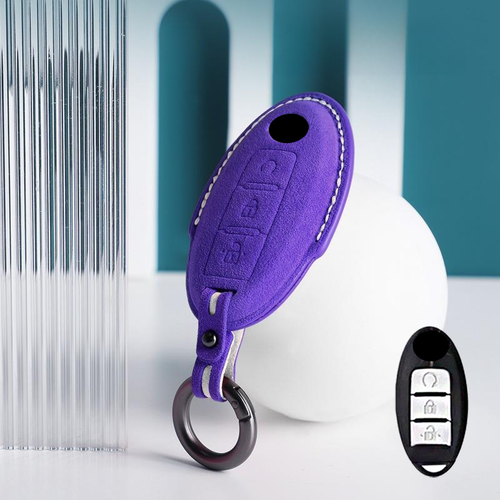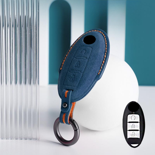 Suede Leather Car Key Fob Case Cover For Nissan Qashqai Pulsar Juke March 370Z