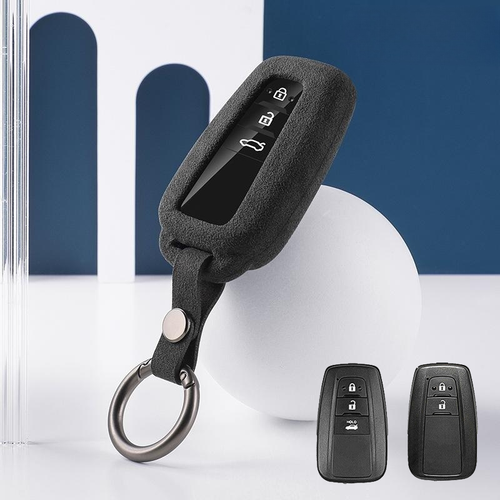 Suede Leather Car Key Fob Case Cover For Toyota Camry Corolla C-HR Prius RAV4