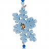 Blue glittered snowflake has a gold bead for the O
