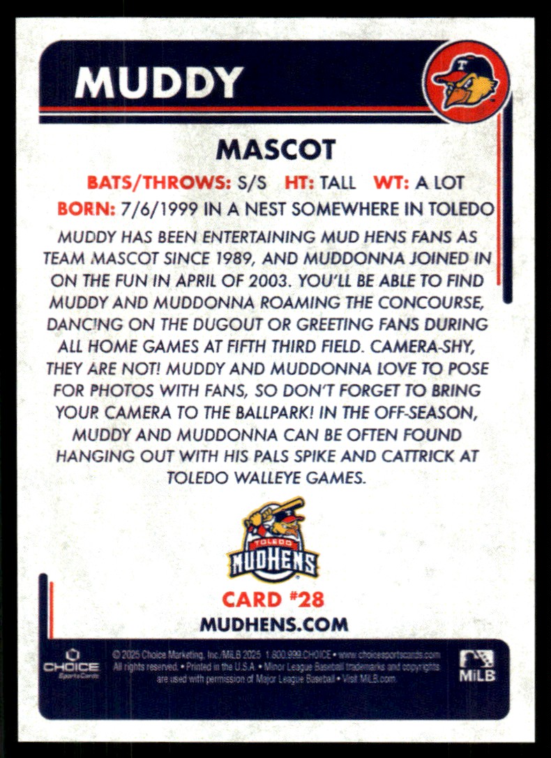 2025 Muddy Mascot Choice Minor League Rookie Card Toledo Mud Hens