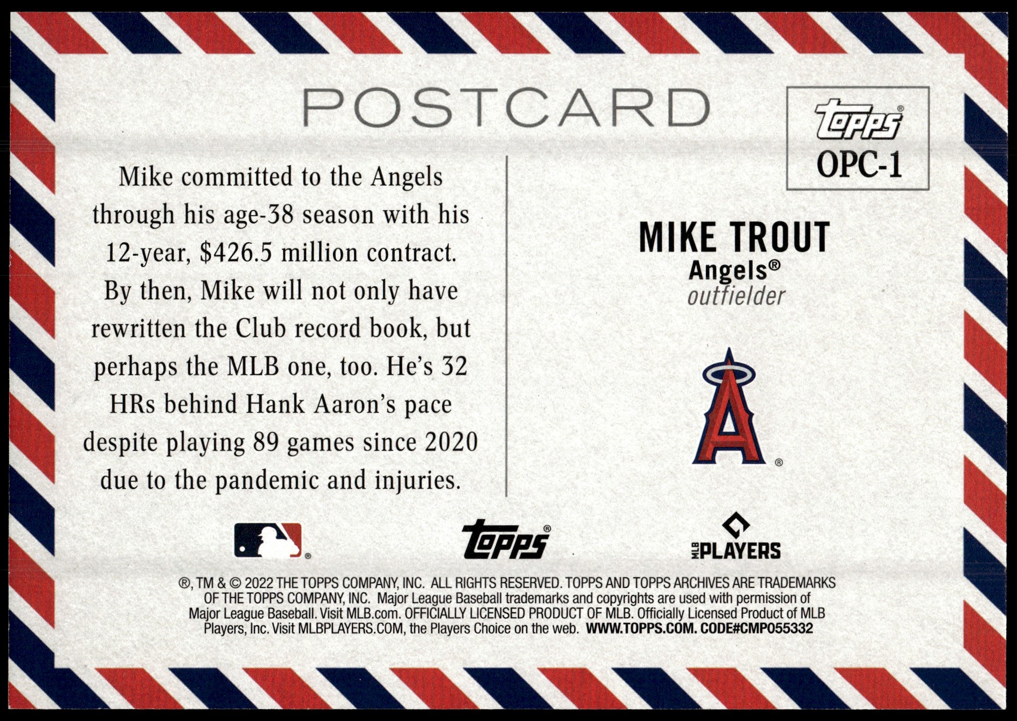 | 2022 Topps Archives Box Topper Mike Trout Los Angeles Angels #OPC-1 |