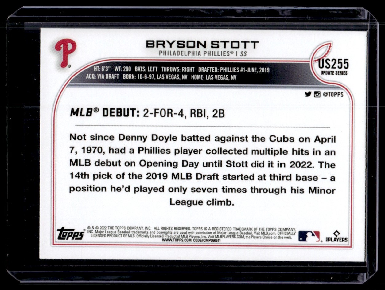 | 2022 Topps Update Gold Foil Bryson Stott RC Philadelphia Phillies #US255 |