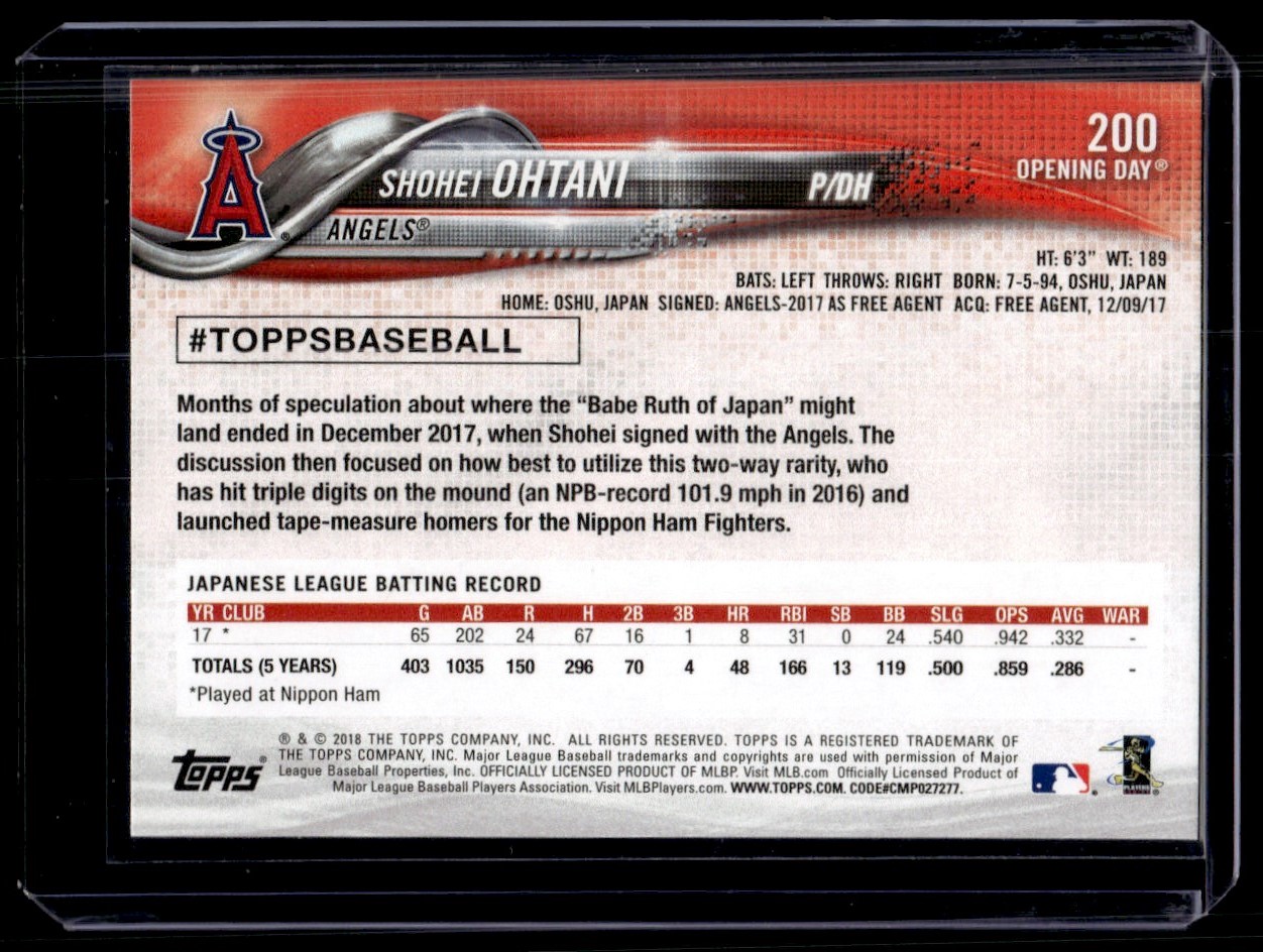 | 2018 Topps Opening Day Shohei Ohtani RC Los Angeles Angels #200 |