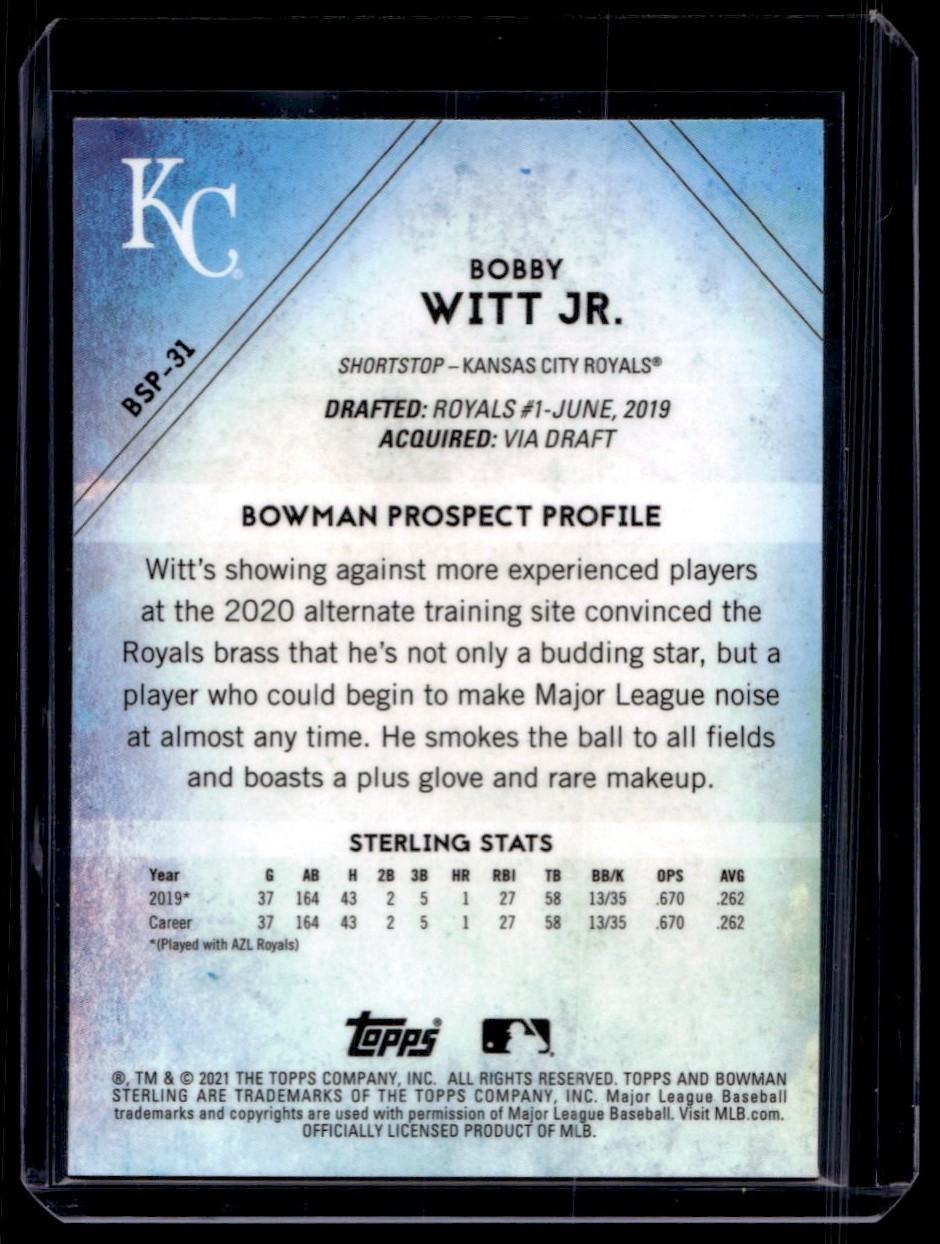 | 2021 Bowman Sterling Bobby Witt Jr. Kansas City Royals #BSP-31 |