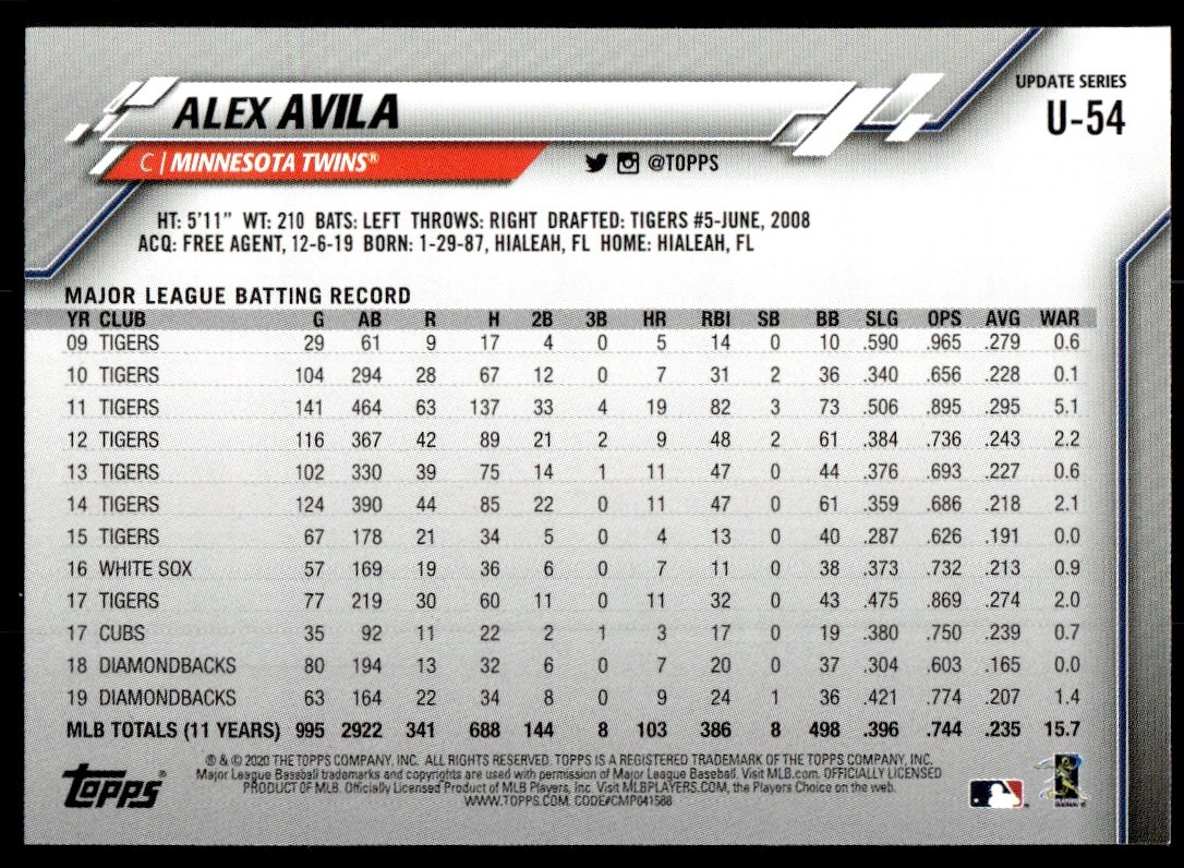 | 2020 Topps Update Alex Avila Minnesota Twins #U-54 |