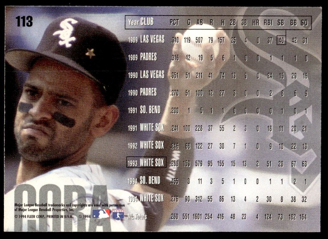 | 1995 Fleer Joey Cora Chicago White Sox #113 |