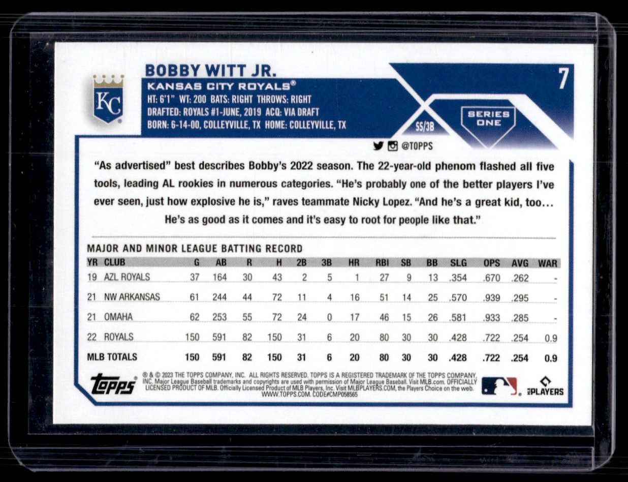 | 2023 Topps Bobby Witt Jr. Kansas City Royals #7 |