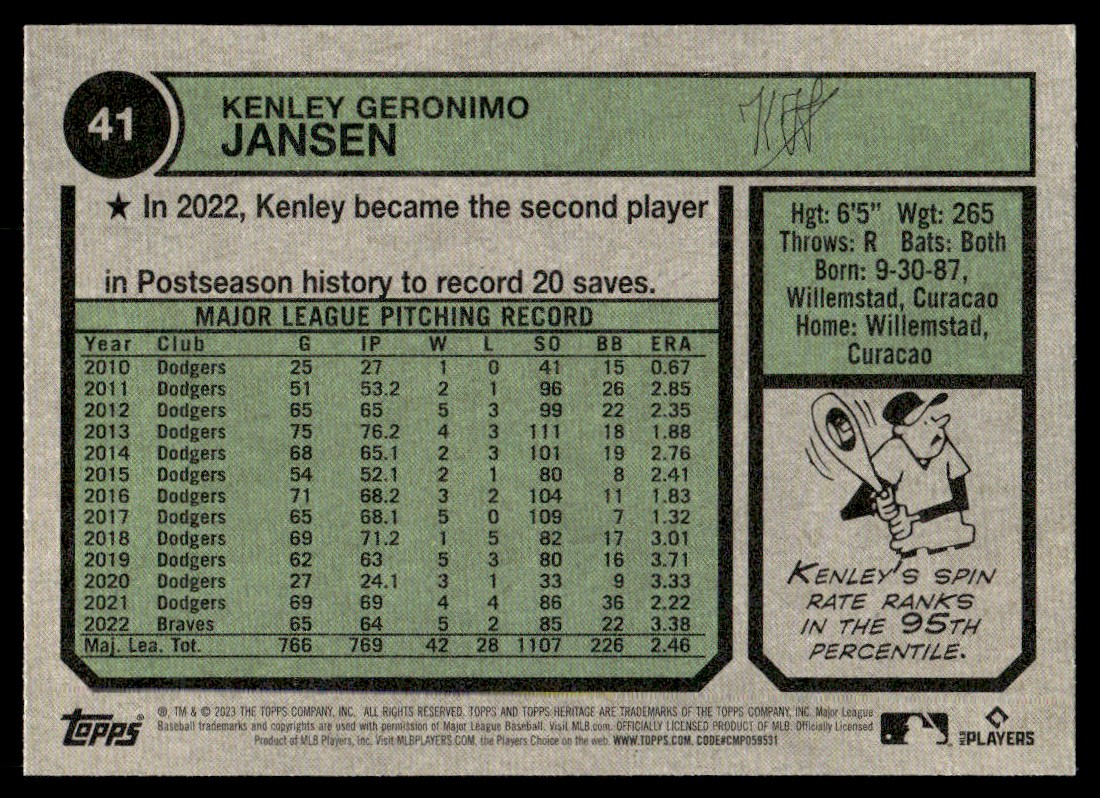 | 2023 Topps Heritage Kenley Jansen Boston Red Sox #41 |