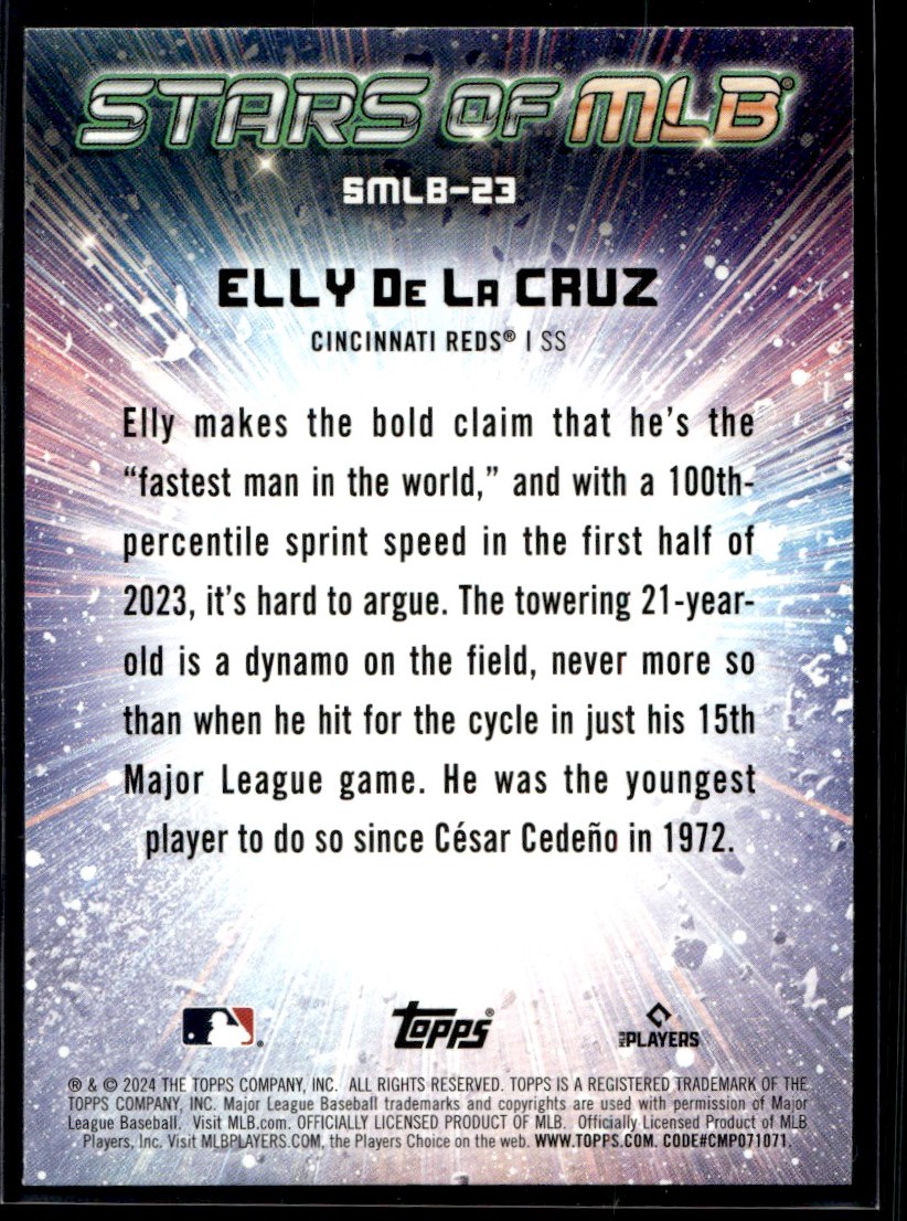 | 2024 Topps Series 1 Stars of MLB Elly De La Cruz Cincinnati Reds #SMLB-23 |