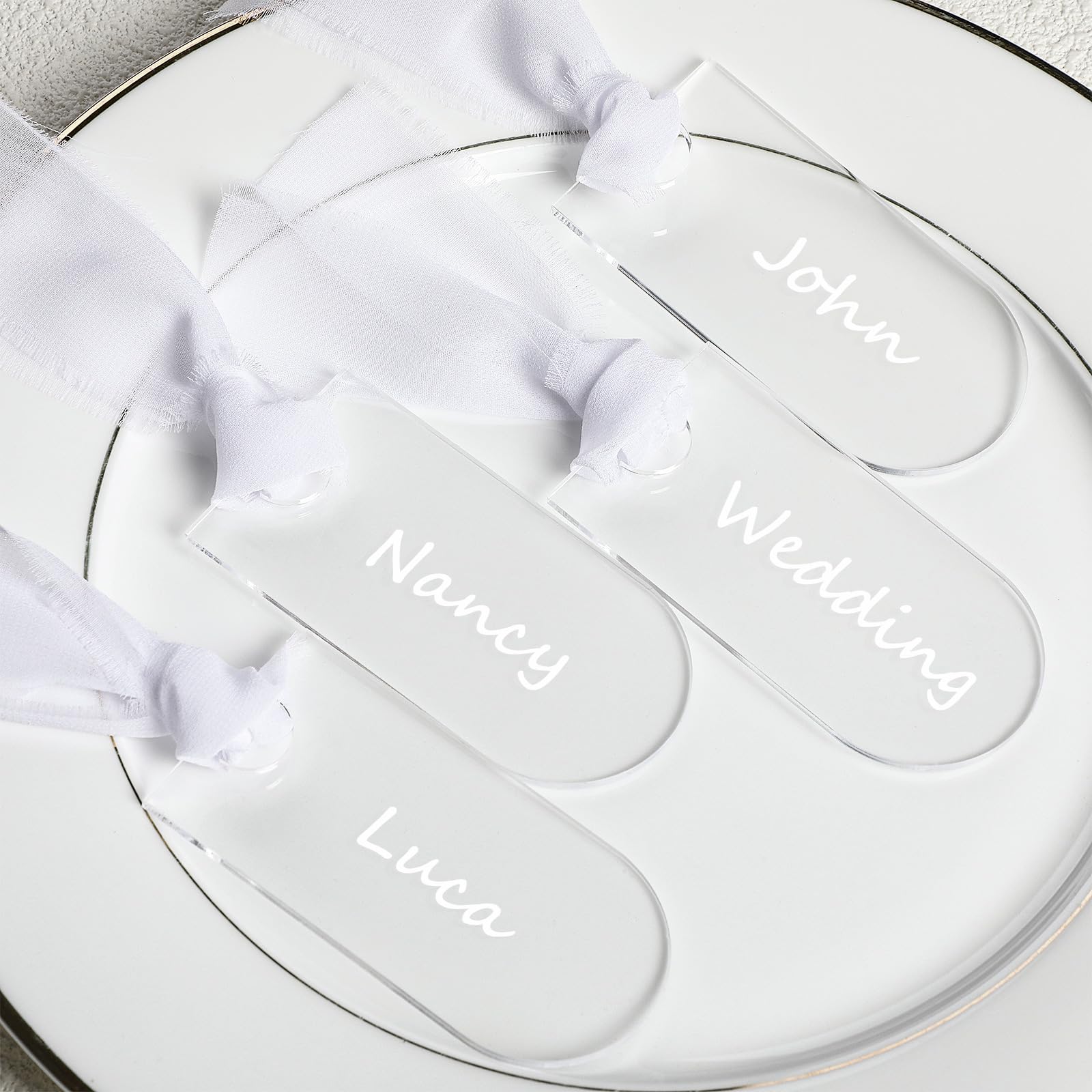 Features: Reusable: Enjoy the flexibility with our blank wedding place cards designed for multiple uses. Simply apply a cleaning agent to refresh the cards after each event, allowing them to be applied again for future weddings, birthdays, or business banquets Flexibility: Our name place cards for tables are designed to accommodate any design vision you have in mind. Whether modern or rustic, they serve as the cards for creative DIY projects, allowing you to showcase your unique style at any gathering. Specifications: Material: acrylic Color: as shown in the picture Size: Acrylic Wedding Place Cards: 3.54x1.77 inch White Ribbon: 4 cm in width and 5.5 yard in length Package includes: 24 x Acrylic Wedding Place Cards 2 Rolls of White Ribbon Notes: Manual measurement, please allow slight errors on size. The color may exist a slight difference due to different screen displays