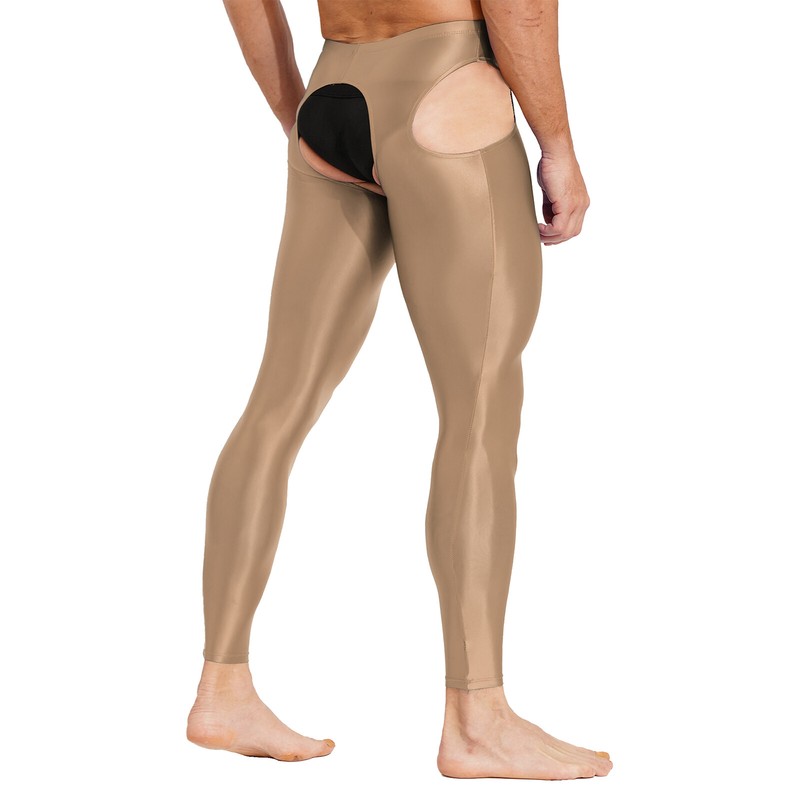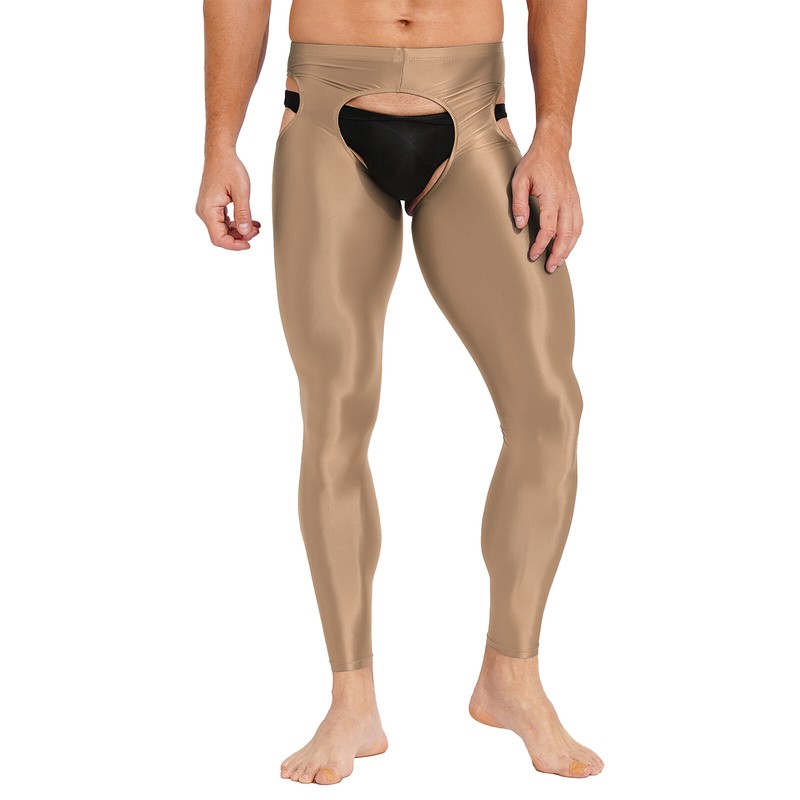 Mens Hollow Out Stretchy Leggings Mid Glossy Elastic Waistband Skinny Pants Underwear Nightwear.