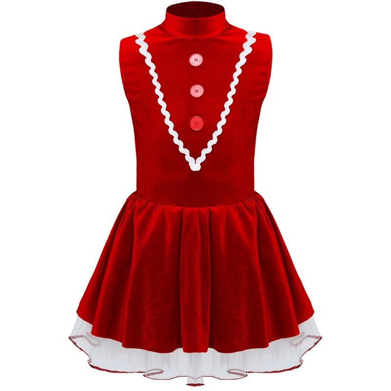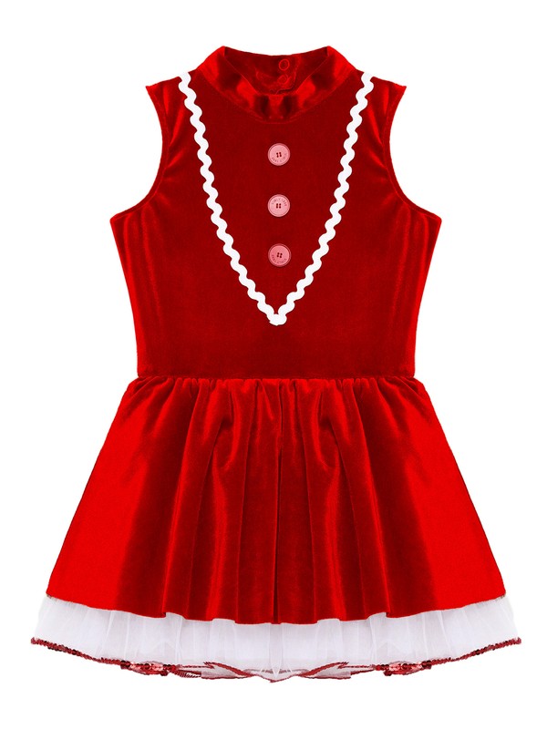 One-piece Christmas gingerbread man costume for child size, it is leotard style with velvet dress and tutu hem.