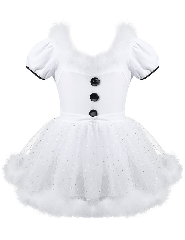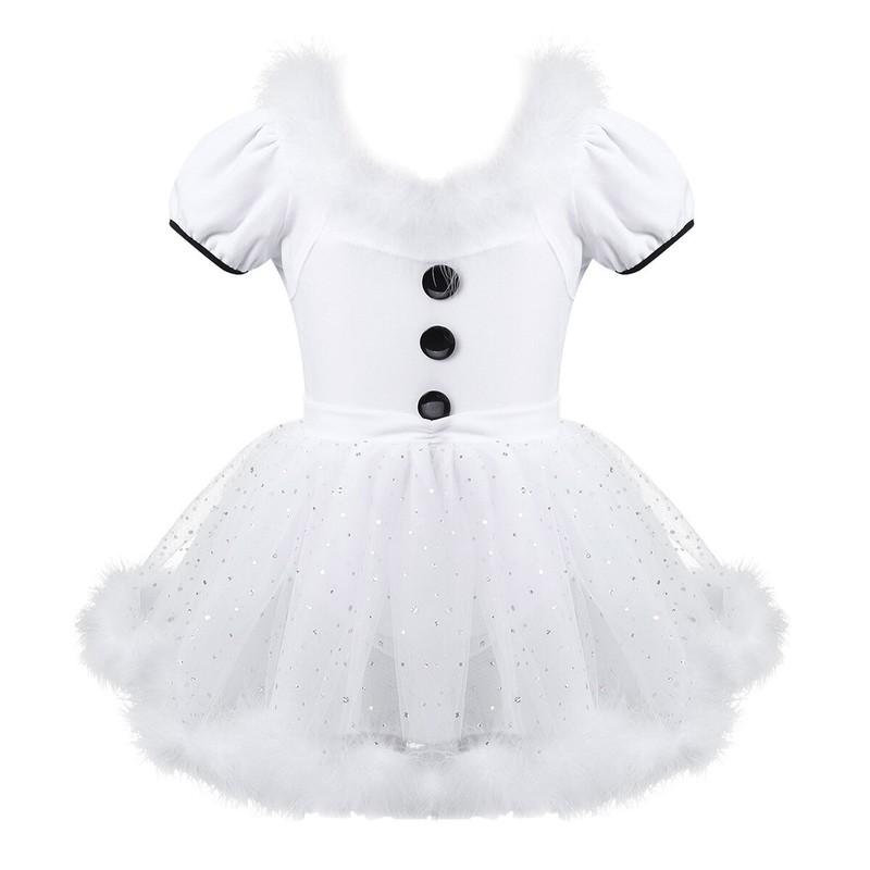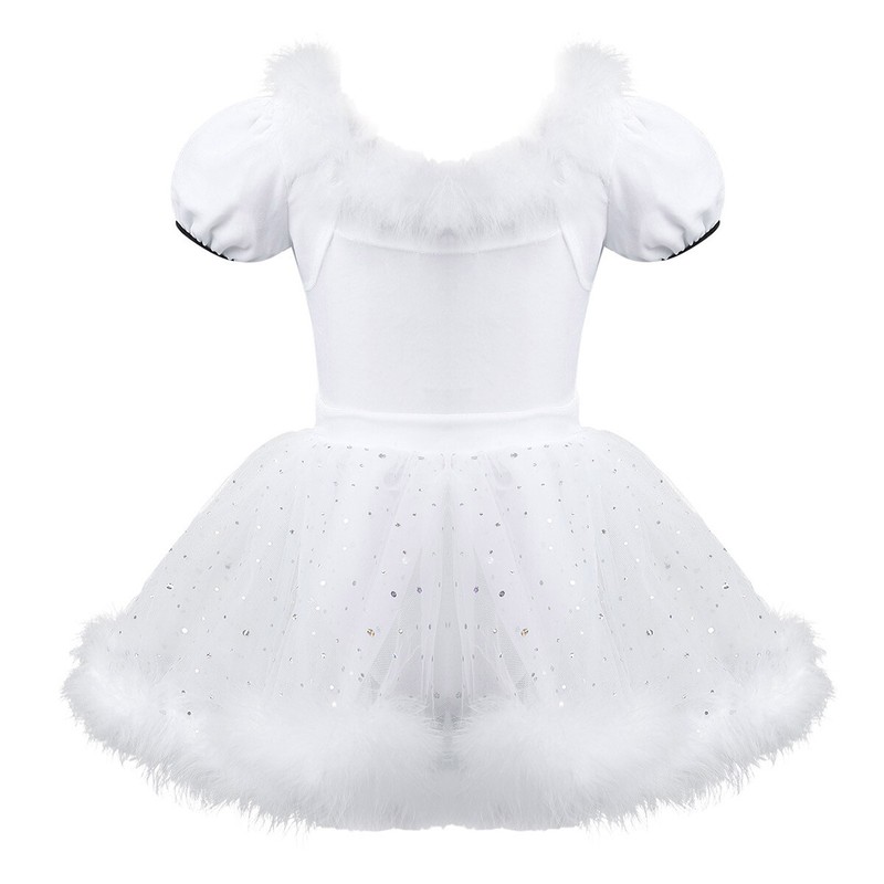 UK Girls Dance Dress Christmas Short Puff Sleeves Ice Skating Mesh Leotard Kids