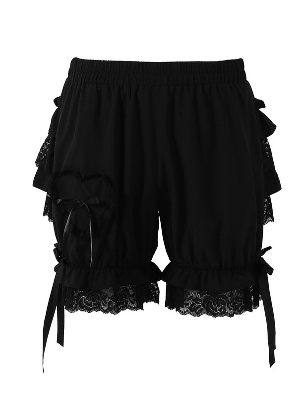 Women’s vintage victorian gothic ruffle pumpkin shorts bloomers shorts, pull on closure.