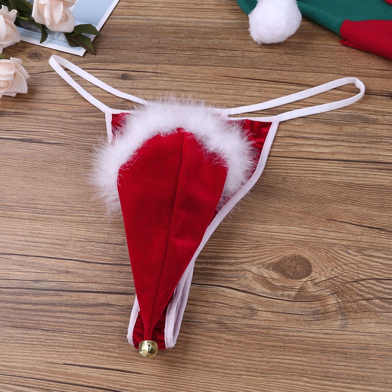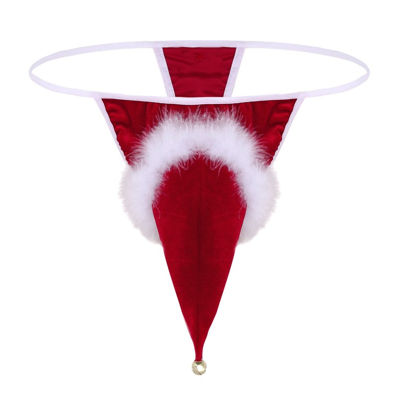 UK Sexy Men's Velvet Briefs G-string Thong Underwear Christmas Santa Costumes