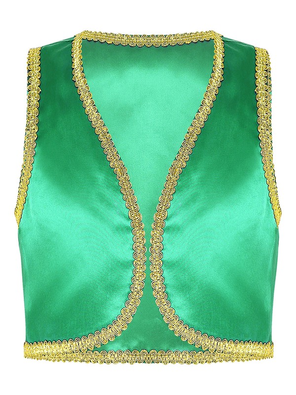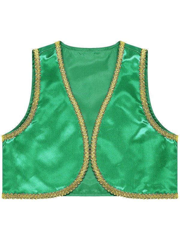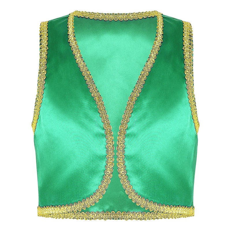 UK Kids Boys Arabian Prince Vest Waistcoat Open Front Golden Trimming Cosplay