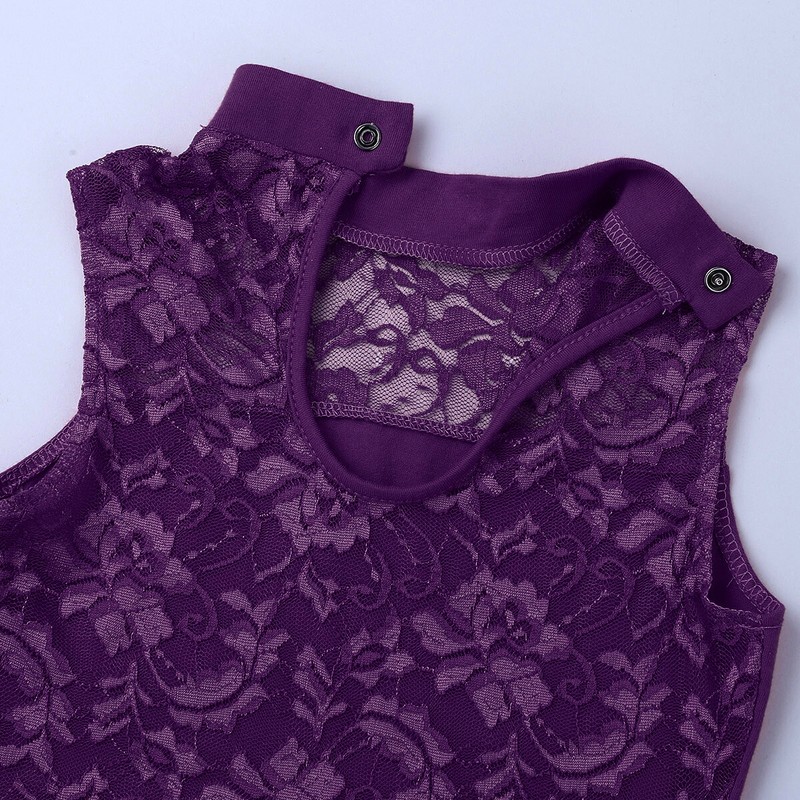 Girls Ballet Dance Leotard Floral Lace Fancy Kids Sleeveless Gymnastic Bodysuit