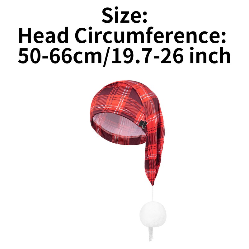 Mens Adjustable Plaid Cap Hat with Pom Ball and Tassel Christmas Daily Nightwear