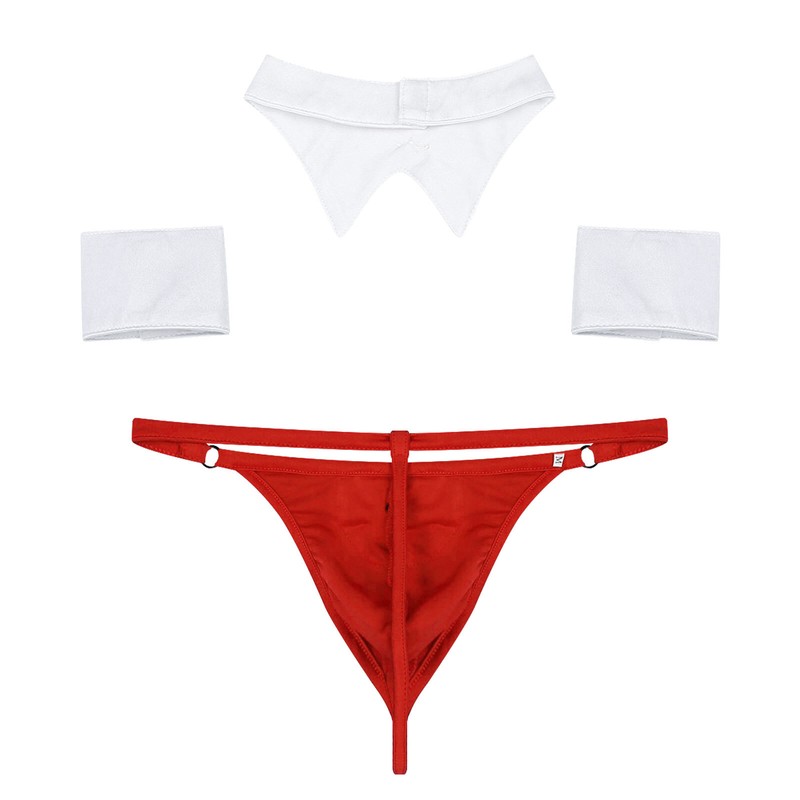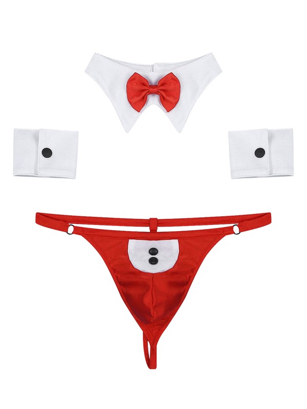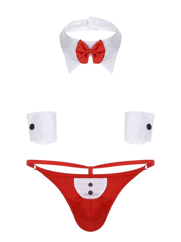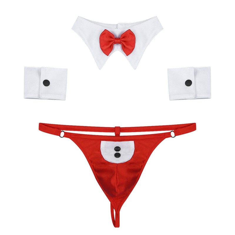 UK Sexy Mens Thong Briefs Lingerie Set Tuxedo With Collar Waiter Costume_Cosplay