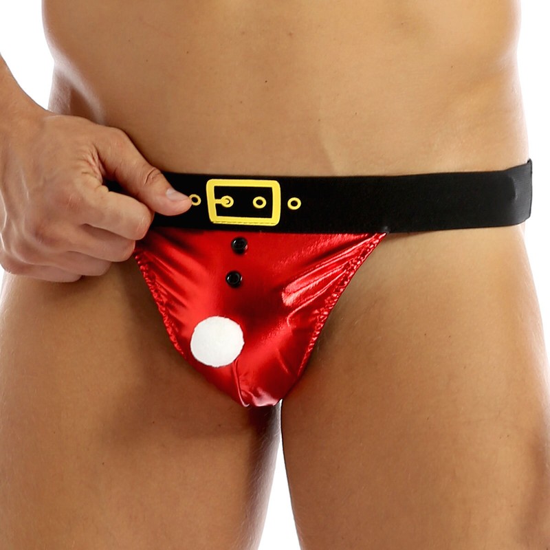 Men’s Christmas holiday fancy cosplay costume jockstrap thong briefs underwear, pull on closure.