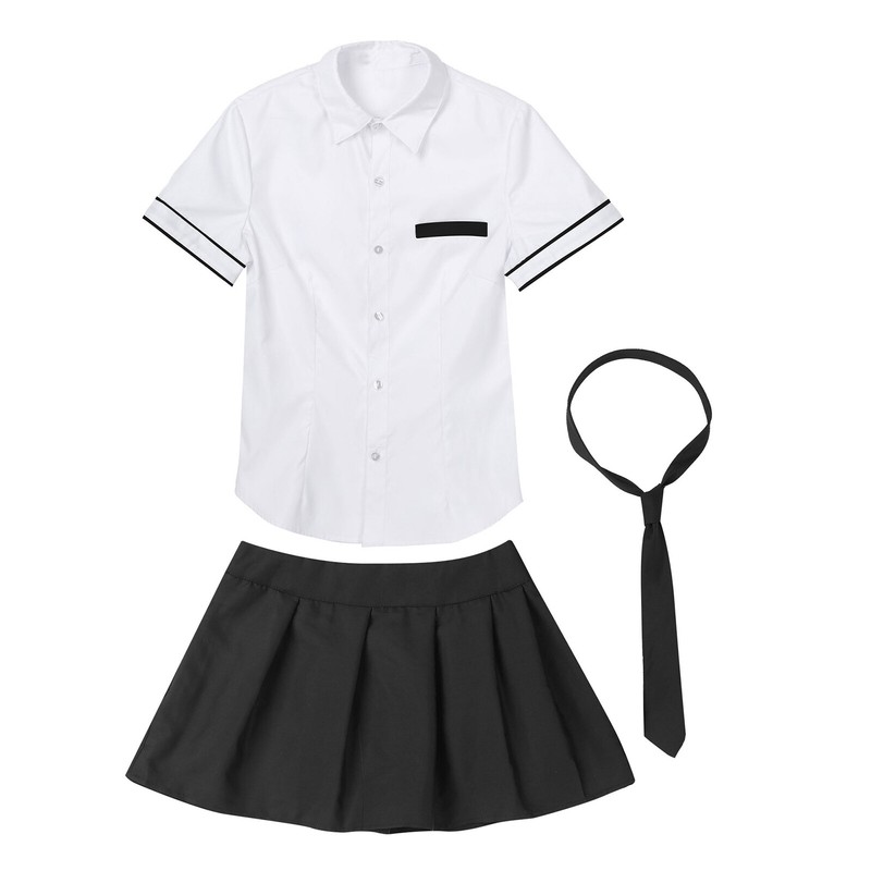 UK Womens Short Sleeve Shirt with Skirt Costume School Girl Uniform Cosplay Set
