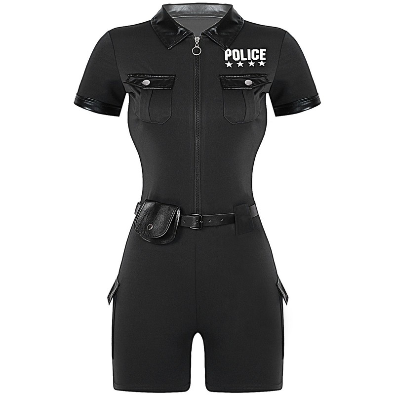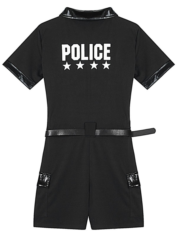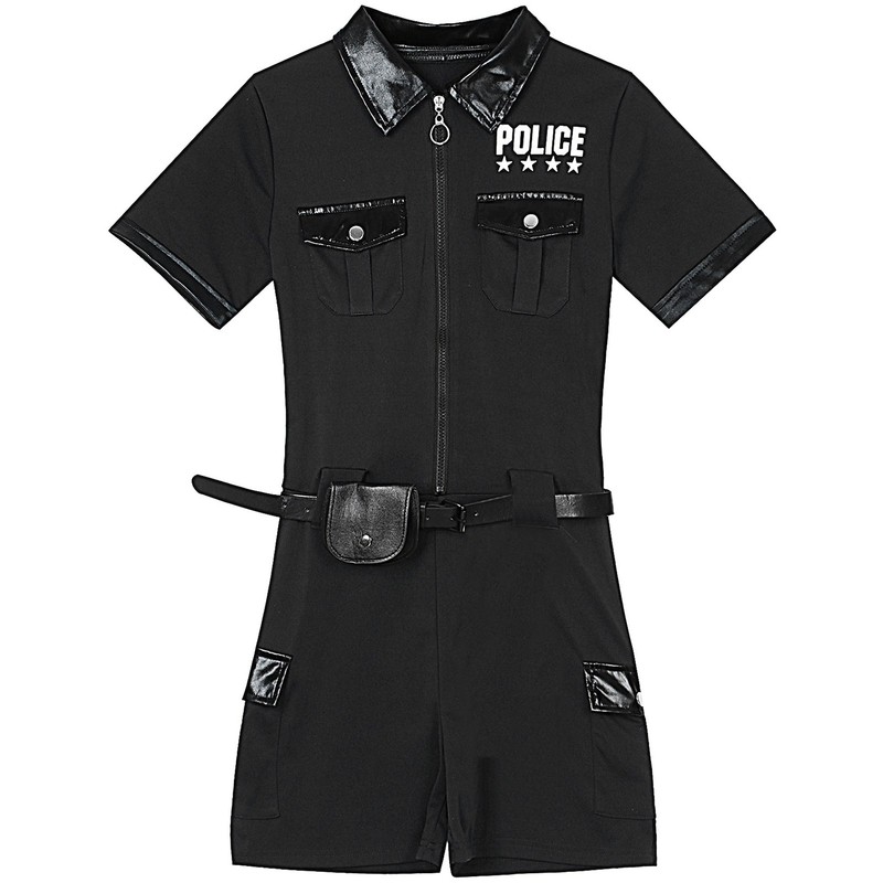 Policewomen outfit includes romper, faux leather belt and purse, 3-piece a set.