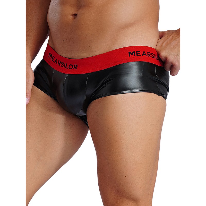 UK Men's Bikini Boxer Briefs Shiny Metallic Underwear Leather Liquid Swim Shorts