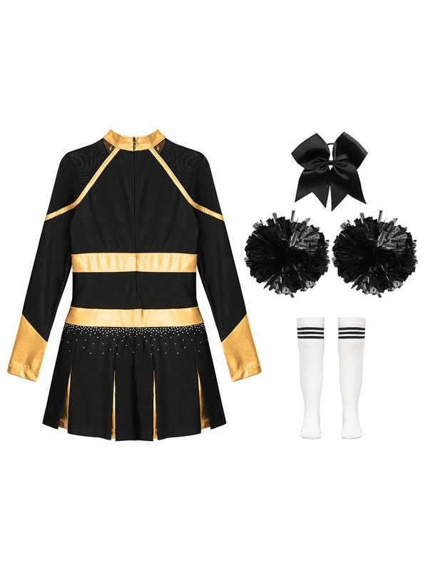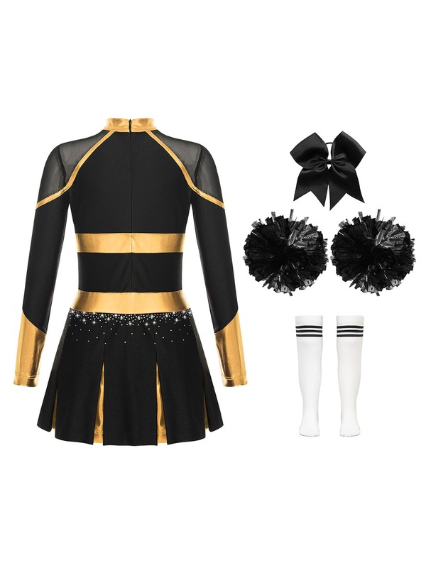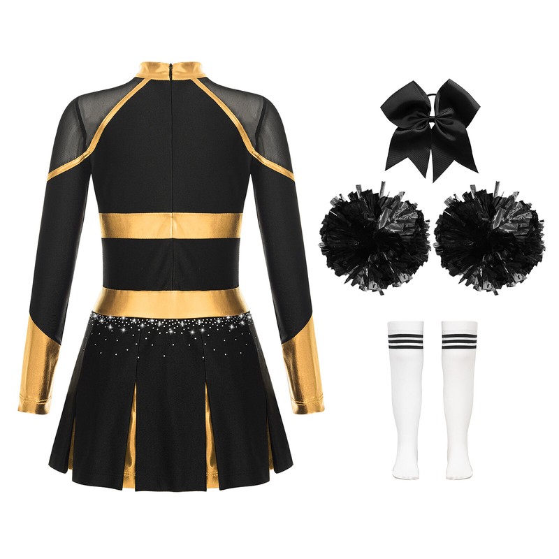 Girl’s cheerleading dance dress with glittery rhinestones letter pattern makes your child eye-catching in the crowd.