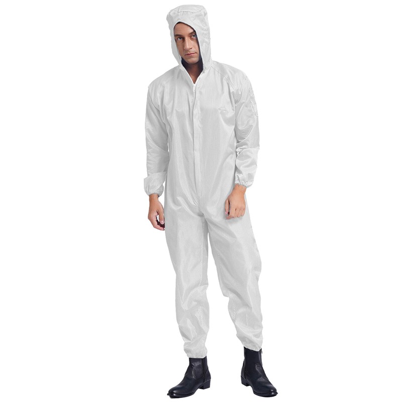 UK Unisex Hooded Jumpsuit Coverall Anti-Static Dustproof Front Zipper Costume