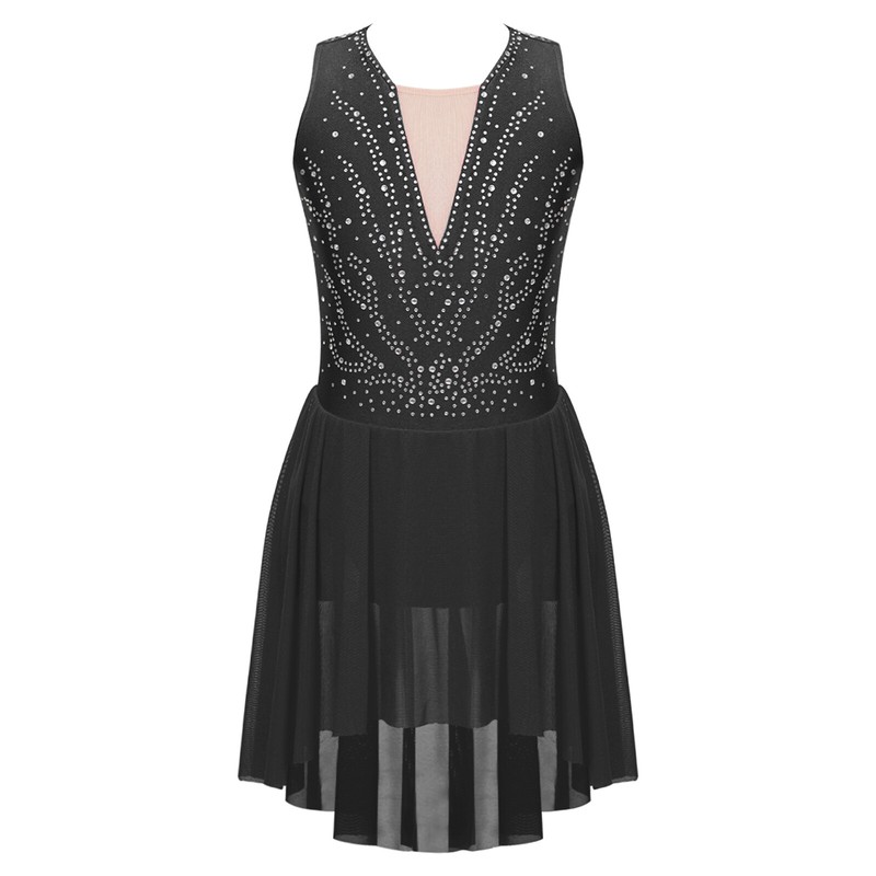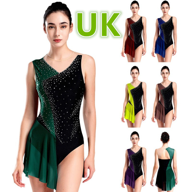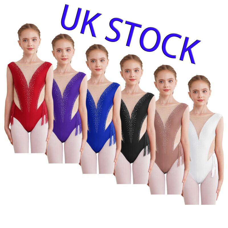 UK Girls Figure Skating Dress Sheer Dancewear Modern Dancewear Lyrical Costume