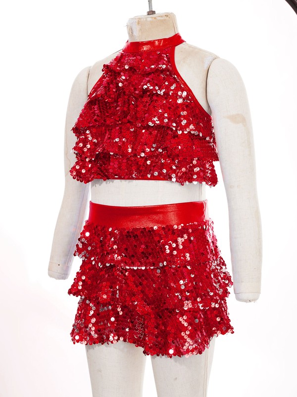 Dance costume is made of polyester and sequins material, hand wash.
