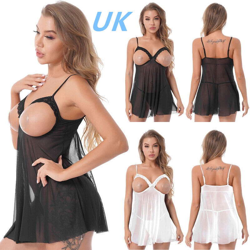 UK Women Wetlook PVC Leather Outfits Shelf Bra Tops with Thongs Garter Lingerie