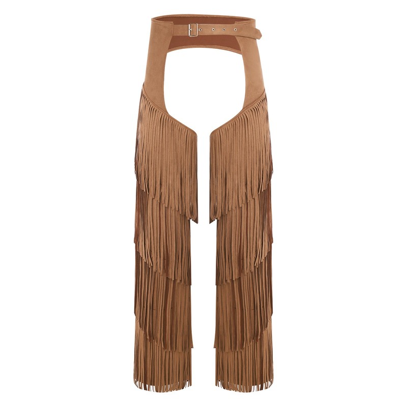 Set Include: 1Pc Chaps PantsCondition: New with tagsMaterial: 100% PolyesterFeatures:Made from 100% polyester, the pants is lightweight and easy to move in, perfect for high-energy activities.The open-crotch and buttless style is a bold and edgy look, fitting the latest fashion trends for a daring and unique appearance.The layered fringe design adds a touch of western charm and movement, making the wearer stand out in the crowd.Equipped with adjustable buckles, the pants can be customized for a comfortable and secure fit according to personal preference.Suitable for various exciting events such as raves, themed parties, Christmas carnivals, and holidays, adding a fun and festive atmosphere.