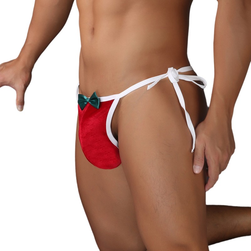 Men's Velvet Christmas Funny Underwear Halter Bra or Low Rise Thong Nightwear