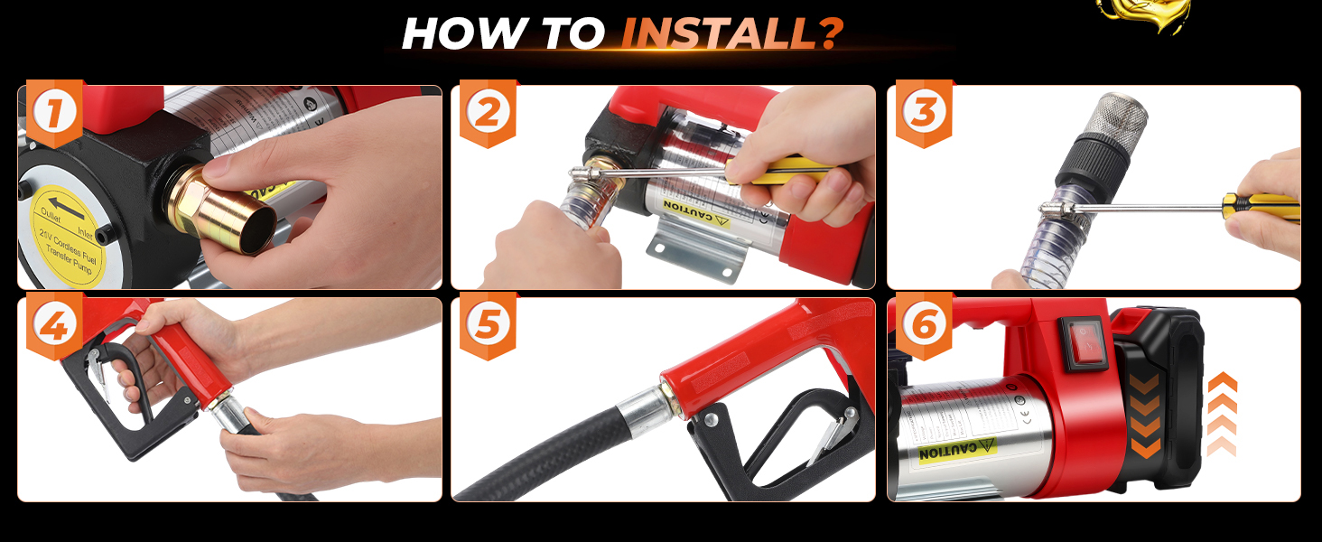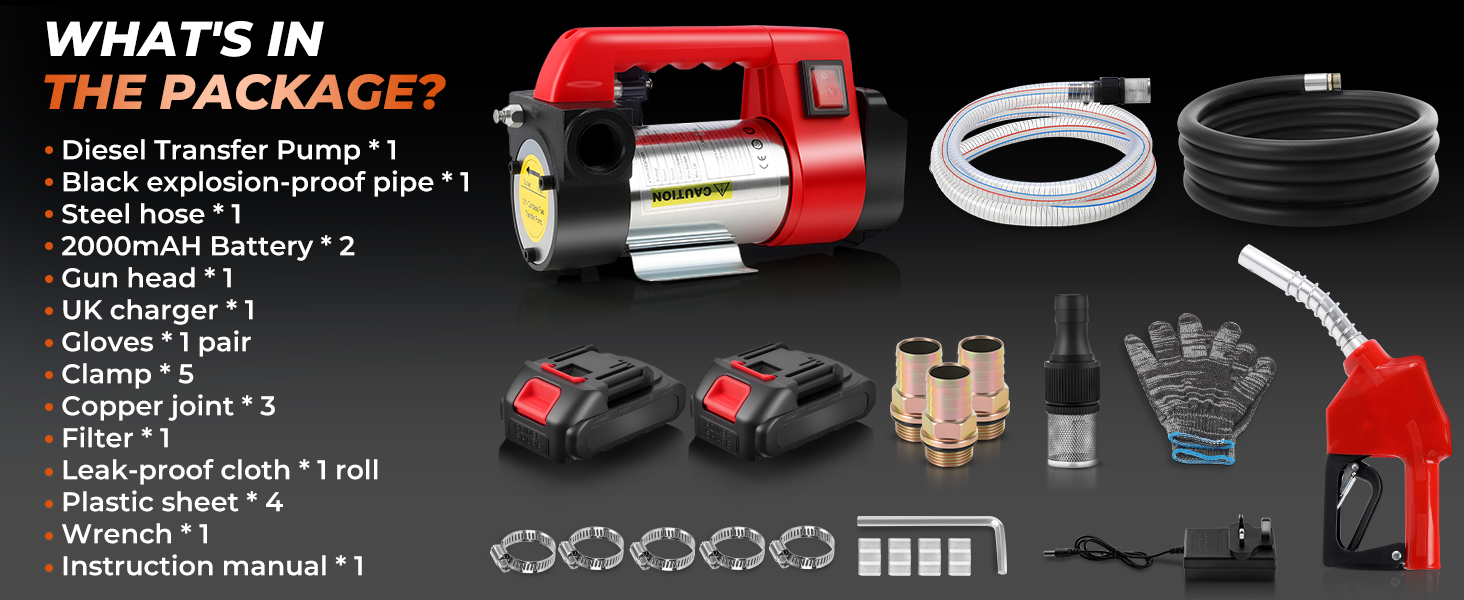 【Cordless & Portable Diesel Transfer Pump】Cordless Diesel Transfer Pump Designed for outdoor convenience, this electric transfer pump eliminates messy cables and power limitations. The pump includes a reinforced carrying handle and a base that can be securely mounted if needed.
