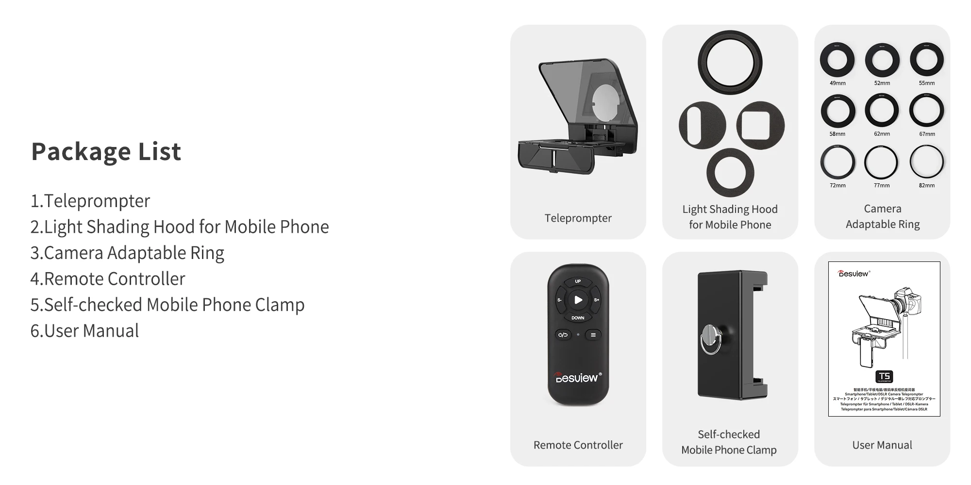 Brand Name : JYYXFOrigin : Mainland ChinaModel : t5Item Weight : 500gSupported Prompting Device Max Size : 11inchSupport Remote Control : YesSupported Prompting Device : Tablets,PhonesSupported Shooting Device : Phones,CamerasSupport Vertical Shooting : YesHigh-concerned chemical : None
