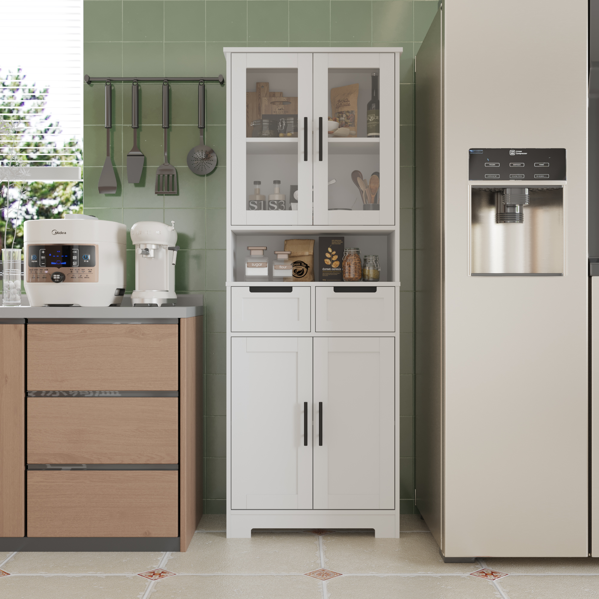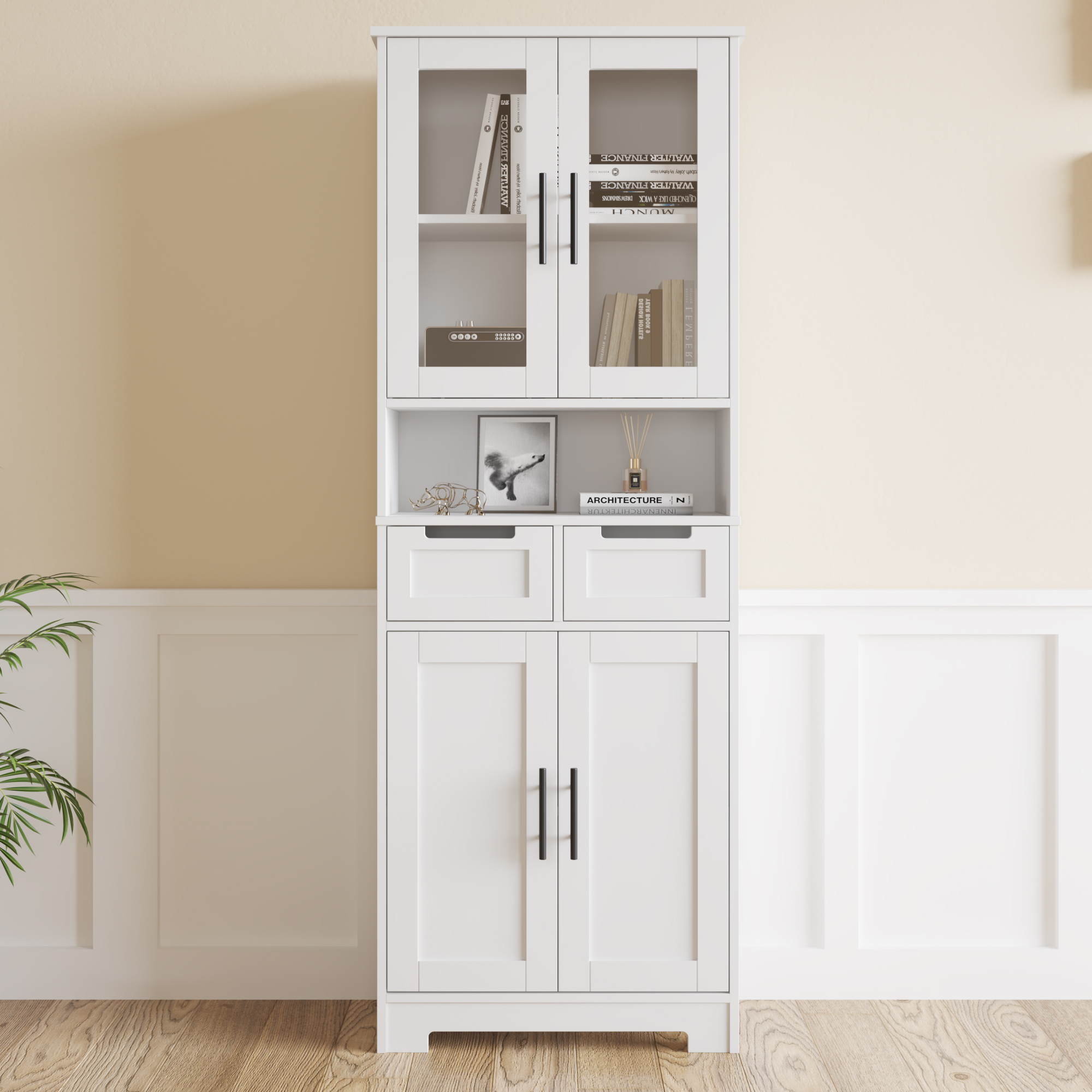 This is a bathroom storage type high cabinet, which is made of high-density panels, high-quality black metal handles, and high-hardness installation accessories; the structure design of 4 doors and 1 drawer makes the storage space of this cabinet large It can be used in the bathroom as a bathroom cabinet, in the dining room as a sideboard, in the study as a bookcase, in the bedroom as a wardrobe, and in the living room and entrance.