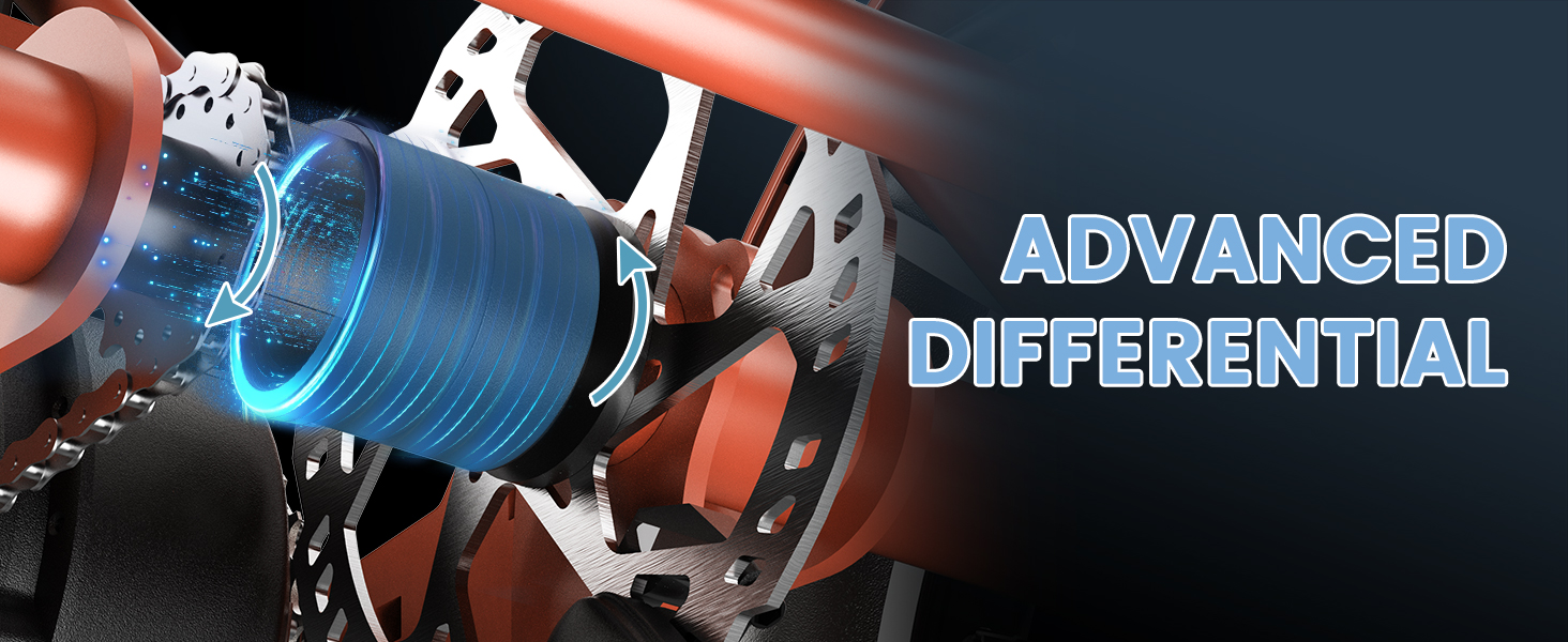 Peak Performance & Advanced Control: Robust power with the our trike's 750W motor, peaking at 1600W. Equipped with a rear central hub motor and an innovative differential system, it ensures different speeds for the rear wheels, enhancing maneuverability and stability, especially during turns.