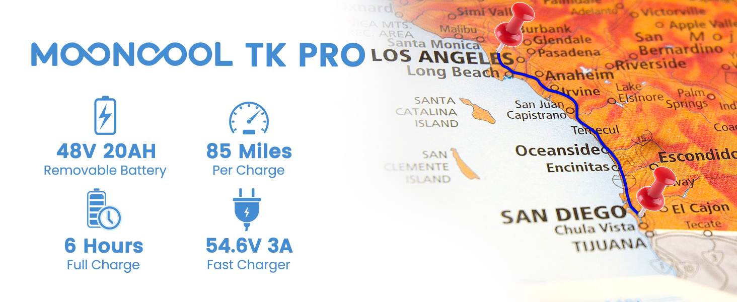 Battery Power:Equipped with a removable 48V*20Ah lithium battery. Provides a range of 60 to 75 miles on a single charge. Explore with confidence and no worries about battery life.