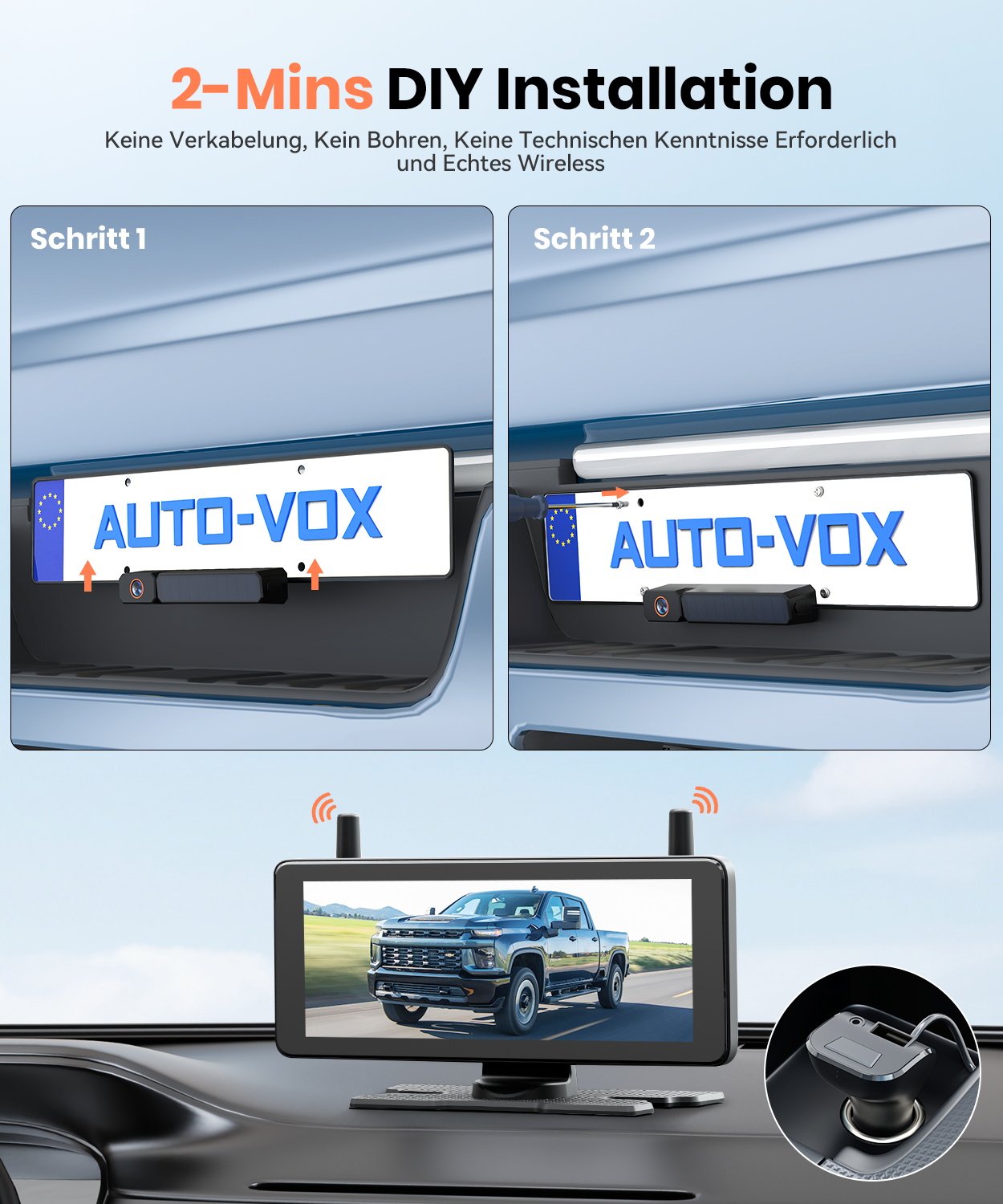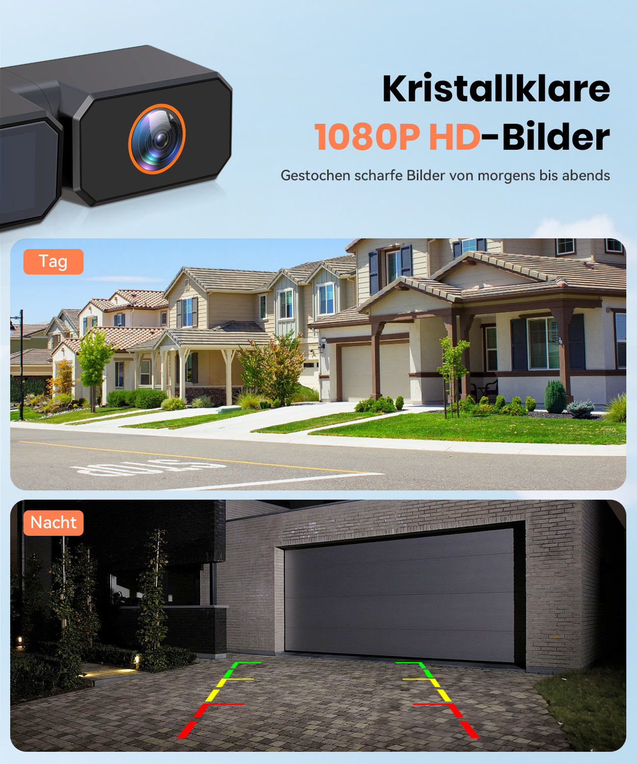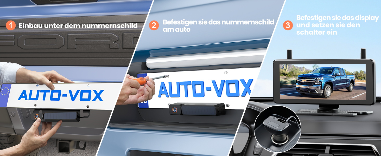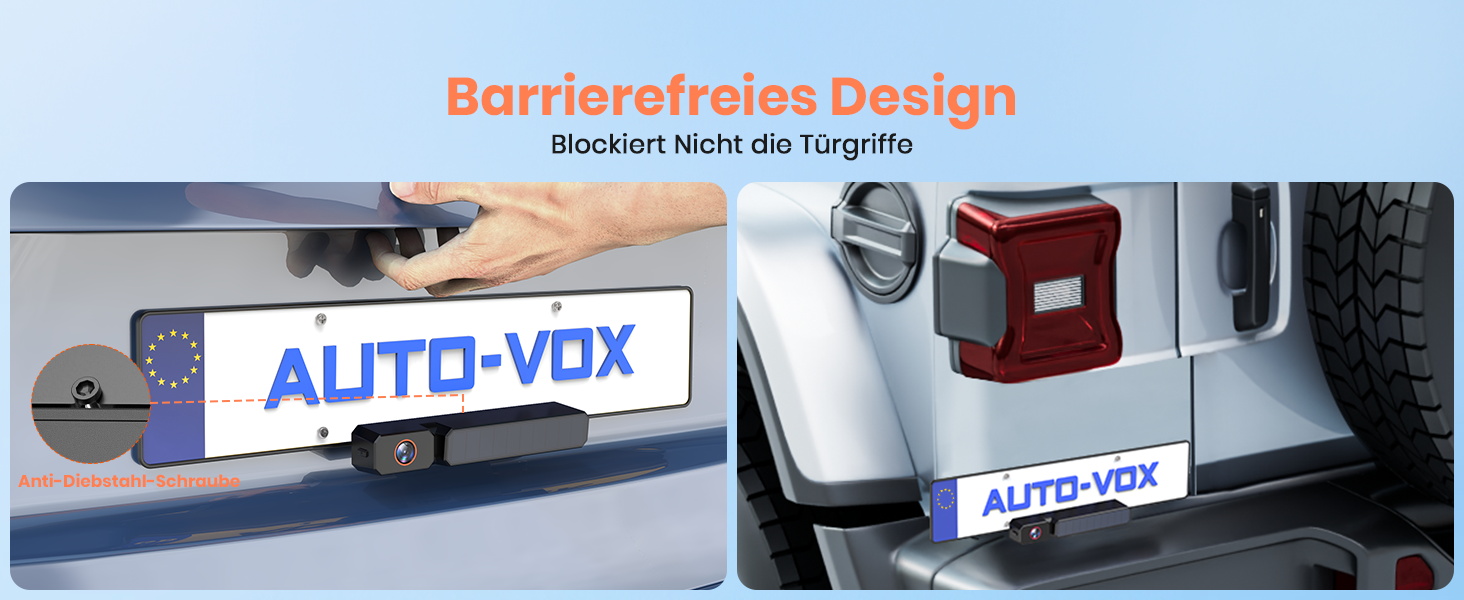 Einfache Montage am Nummernschild: Rückfahrkamera auto passend für EU-Kennzeichen, blockiert kein Licht. Diebstahlsicherung durch Spezialschrauben (Werkzeug inklusive)