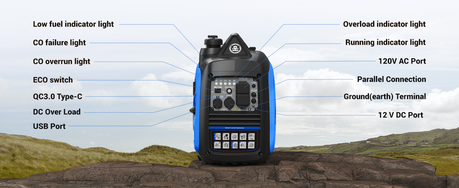 (if the CO concentration in the environment is too high, the CO alarm light will flash. When the CO concentration exceeds 150 mg/m³, the alarm light will begin to flash, and the generator will shut down within 10 seconds. Afterward, the CO alarm light will continue to flash for approximately 5 minutes. During this period, the machine will not start normally. It must be waited until the alarm light stops flashing before restarting. This is because CO concentration requires some time to return to normal levels. Therefore, the generator is not suitable for use in poorly ventilated environments, i.e., it is not suitable for indoor use.